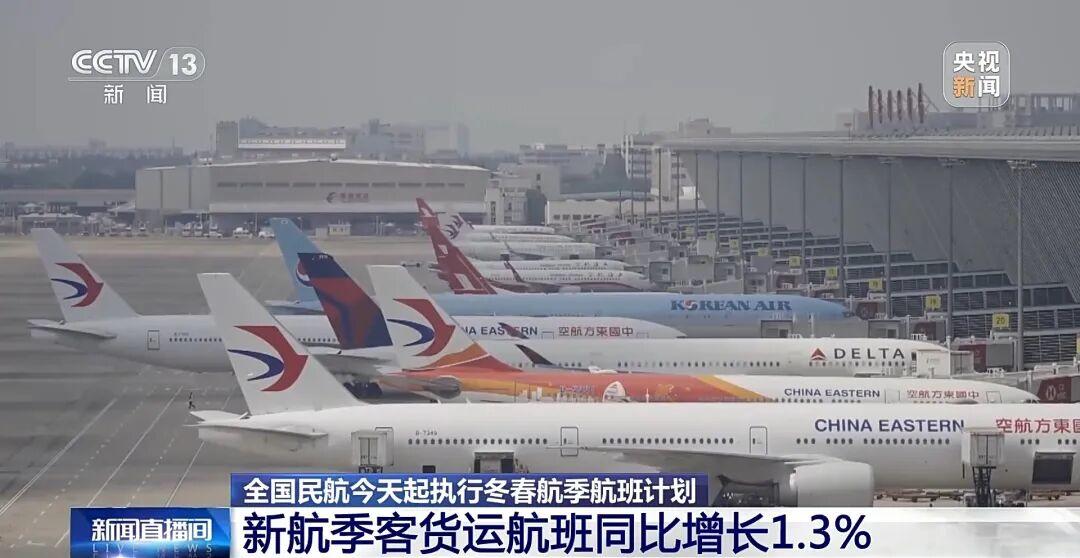 自2025年10月26日起至2026年3月28日执行冬春航季航班计划。新航季共有210家国内外航空公司计划每周安排客货运航班11.95万班,比去年同期增长1.3%。