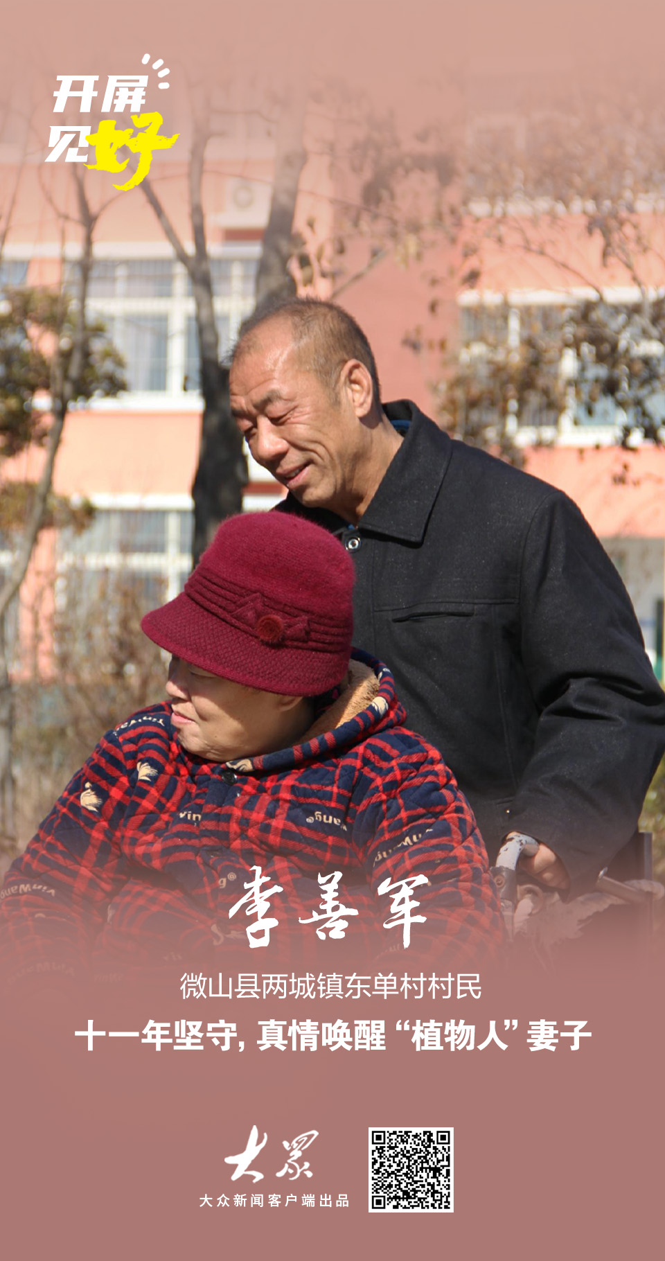 面对外界的赞誉,李善军总是摆摆手,语气朴实而坚定:“我不觉着伟大,这是我应该的,这是我的本分。夫妻走到一块就是缘分,有福同享,有难同当,人得有爱心,那才叫人。”李善军用四千多个日夜的坚守,诠释了“执子之手,与子偕老”最动人的模样:真爱无声,却能创造生命的奇迹;坚守平凡,恰是人间最伟大的力量。