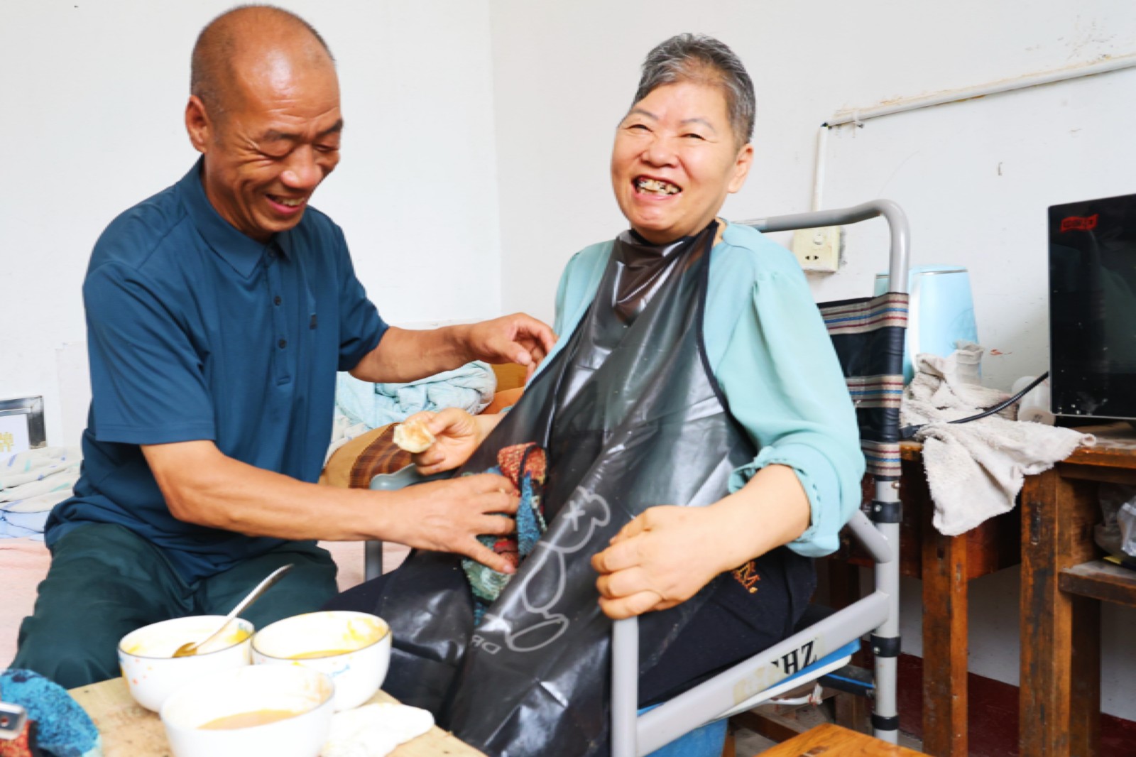 走进李善军家,常常能看到岳淑霞脸上洋溢着幸福的微笑。虽然说话还不是很清晰,但她能努力地表达:“没有他,就没有我了。”这句话,是对李善军11年艰辛付出的真情回应。如今,妻子已经能够自己吃饭,虽然生活仍不能完全自理,但每一个微小的进步,都是这个家庭迈向新生的喜悦印记。