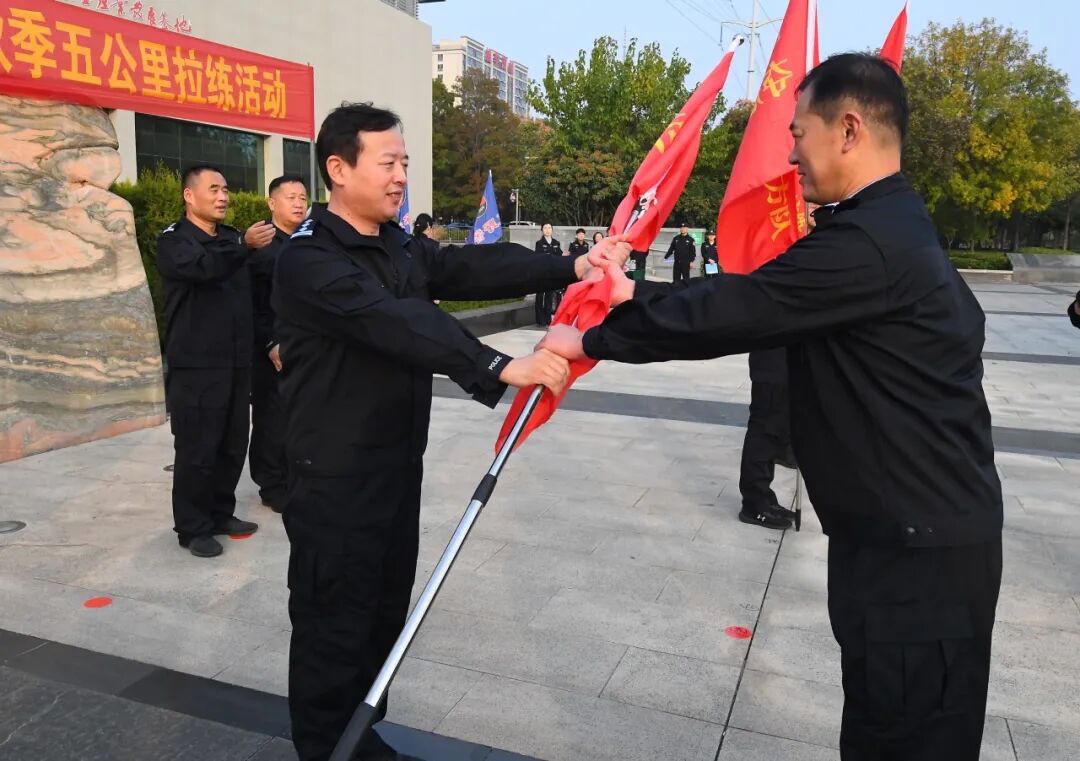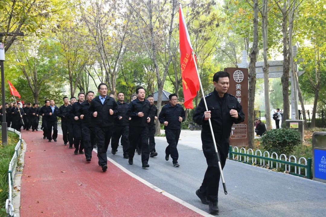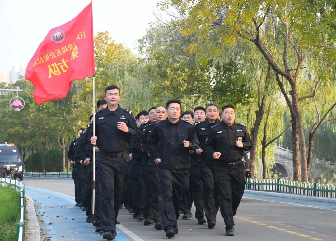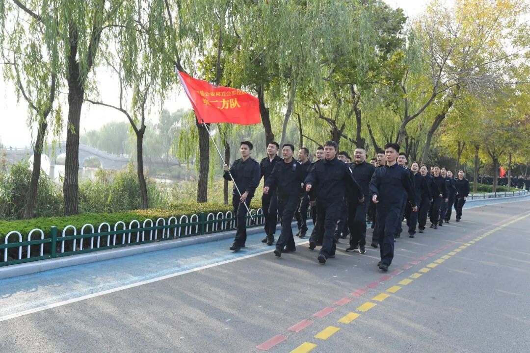 “出发!” 现场指挥员的一声令下,五公里拉练正式开始。全体民辅警闻令而动,在洙水河畔,高擎旗帜、精神抖擞、步伐铿锵地踏上拉练的征程。