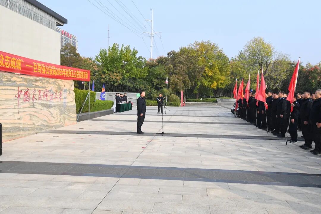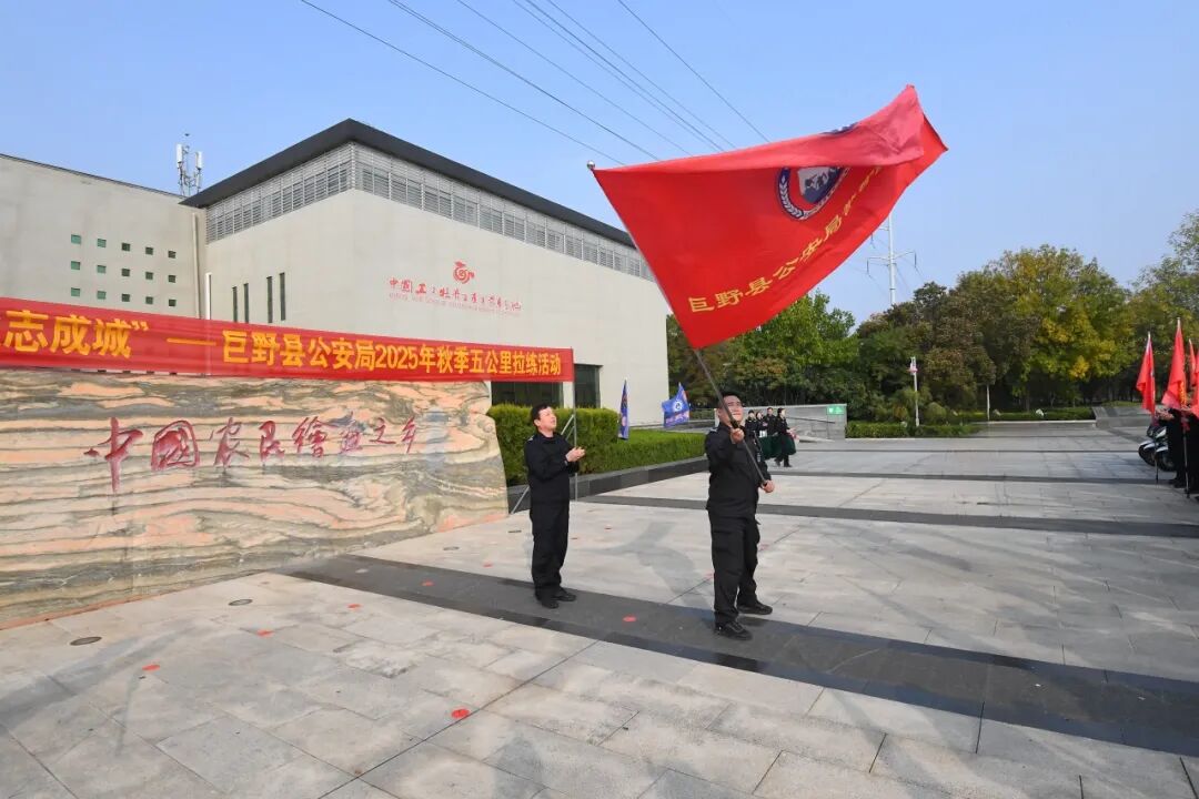 下午3时,巨野县书画院前广场上,旌旗猎猎、警容严整,由县公安局各警种部门组成的9个方队警容严整、精神抖擞,全县公安机关2025年秋季五公里拉练活动在此拉开帷幕。全体人员列队整齐,精神饱满,奏唱《人民警察警歌》,李陶克为拉练活动授旗,全体人员整装待发,等待着那一声冲锋的号令。