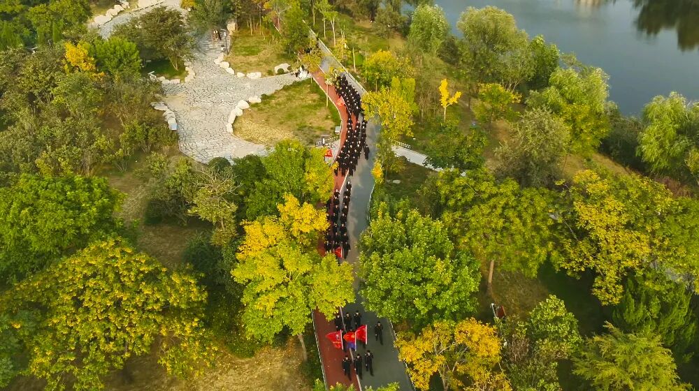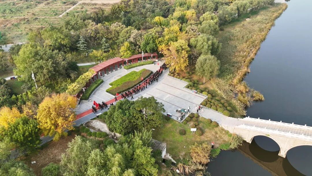 秋日的洙水河公园,金黄叶片缀满枝头,阳光透过枝叶洒下斑驳光影,这里既是巨野标志性的生态美景,也为此次巨野公安拉练提供了独特的“练兵场”。