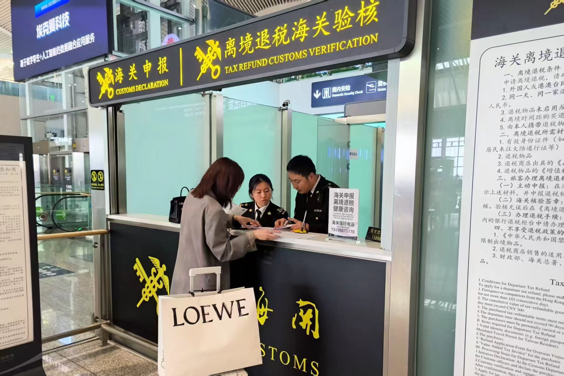 “我们持续聚焦企业诉求,靠前服务、精准发力,提前到机场集团、拟开设离境退税业务的企业走访调研,引导国货潮品、老字号店铺成为退税商店。与此同时,改造、升级现场设备、设施,进一步满足离境退税通关需求,组织多轮现场实操、简化验核流程,大幅提升旅客通关时效。”青岛胶东机场海关旅检总控科科长王青介绍。