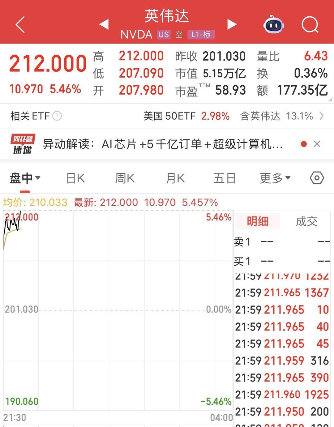 29日晚间,美股三大指数集体高开,道指涨0.26%,纳指涨0.65%,标普500指数涨0.29%。人工智能芯片制造商英伟达涨超3%,成全球首家市值超5万亿美元公司。详情>>