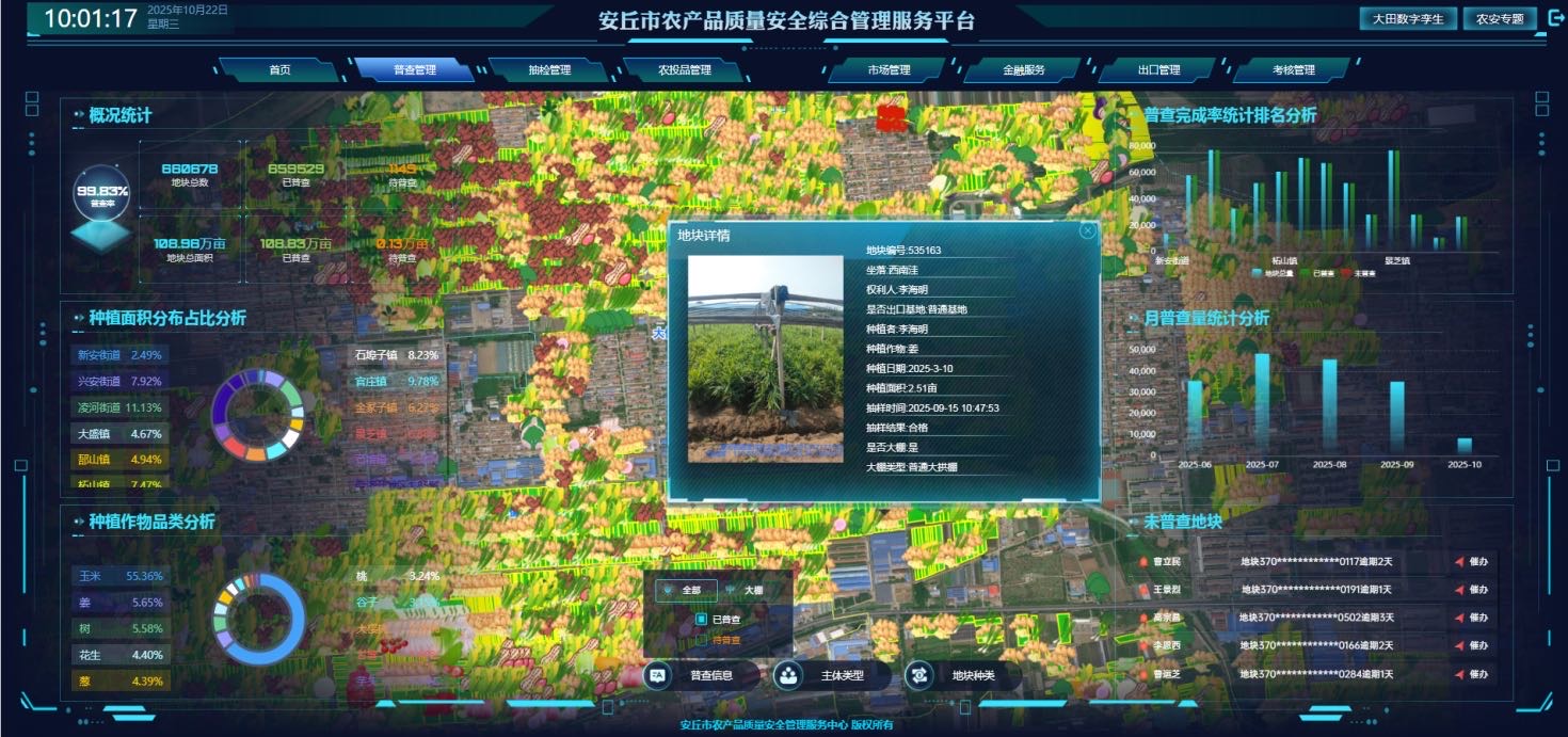 如今的安丘,科技已渗透农业生产全链条:智能传感器监测作物生长,大数据平台分析农田状况并生成定制化方案,无人机按处方图精准播种施肥,区块链技术保障“从种植到餐桌”全程可追溯——13万多个生产经营主体拥有农产品质量安全“数字身份证”,60万个地块的2500万条实时数据生成动态监管热力图,实现从农田到超市货架的“数字制导”安全监管。从智能温室到物联网大棚,云计算、人工智能、物联网等前沿技术深度融入“耕、种、管、收”,一条清晰的智慧农业发展路径,正在安丘的田野上铺展开来。