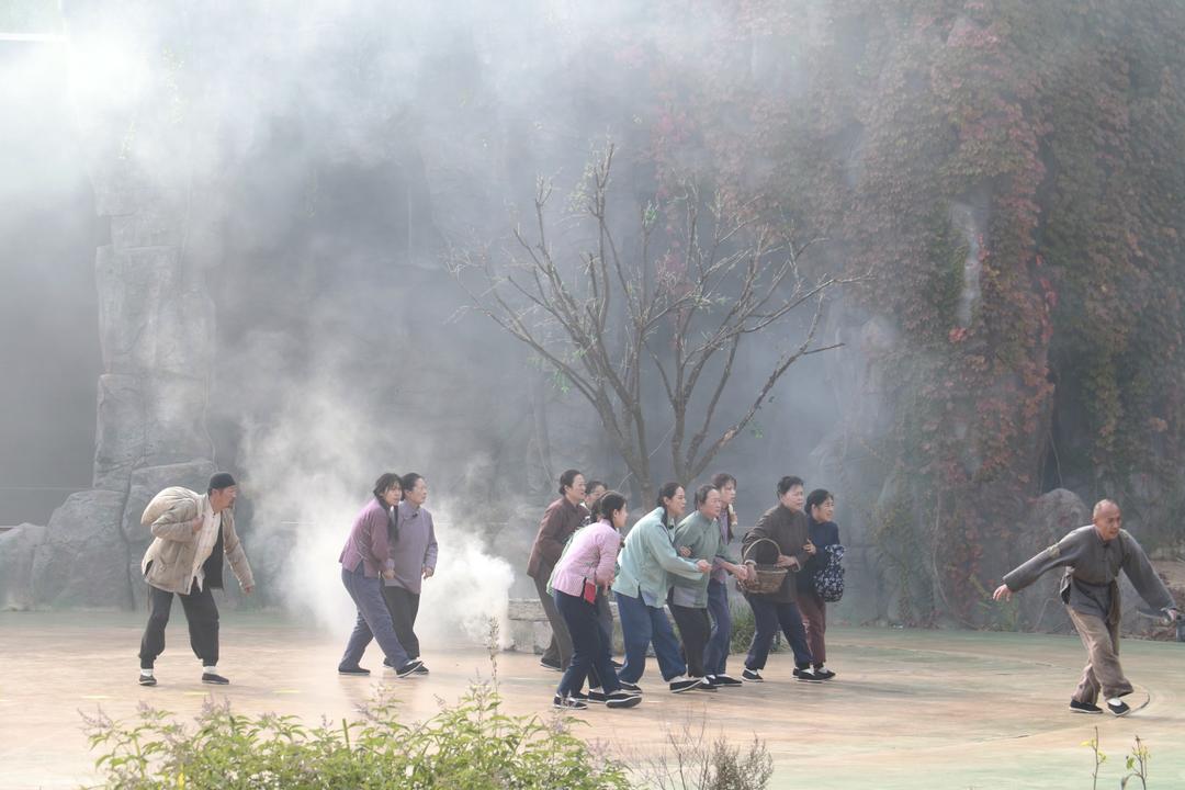 随后,同学们前往雕塑园游览,并驻足碑林瞻仰,在生动故事的讲述中,深切感受沂蒙人民与子弟兵的血肉情深。随后前往沂蒙红嫂研学基地,观看了系列大型实景演出《民兵连》《妇救会》等剧目。剧中红嫂舍身救伤员的感人事迹,让学员们对沂蒙精神有了更真切的体悟;在《重走支前路》沉浸式互动环节中,学员们分组开展运输、救护、护卫等支前任务模拟。枪林弹雨的实景演绎、身临其境的角色扮演,不仅让大家深刻体会到军民团结的磅礴伟力,更真切感悟到奉献与牺牲精神的时代价值。