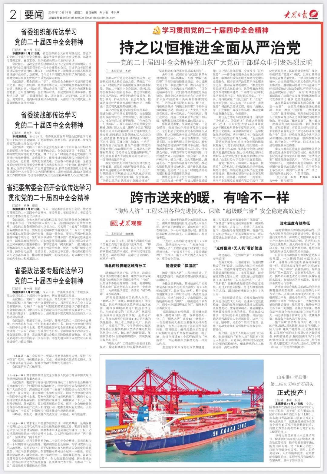 10月28日,2版要闻刊发《持之以恒推进全面从严治党》,报道泰安市纪委监委、泰山区岱庙街道丽景社区党员干部对党的二十届四中全会精神的学习反响。详情请点击这里——