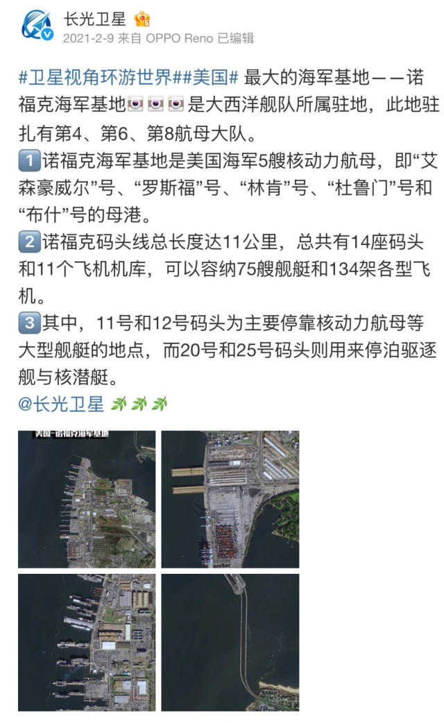 “吉林一号”拍摄的美国诺福克海军基地
