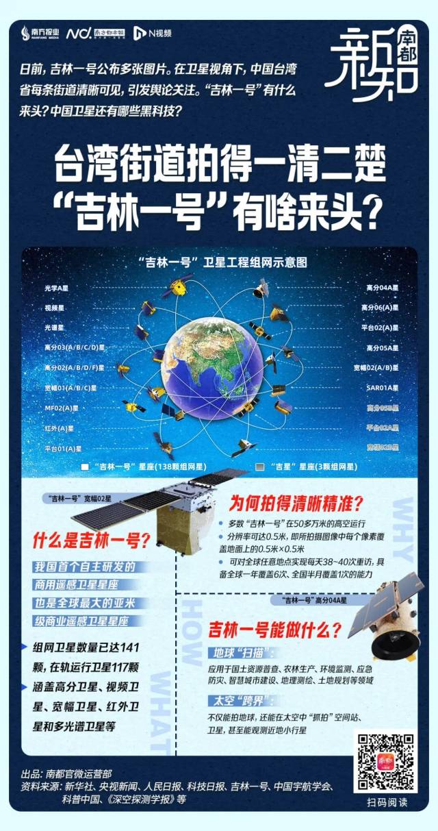 日前,“吉林一号”公布多张图片。在卫星视角下,中国台湾省每条街道清晰可见,引发舆论关注。“吉林一号”有什么来头?还有哪些用途?详情>>
