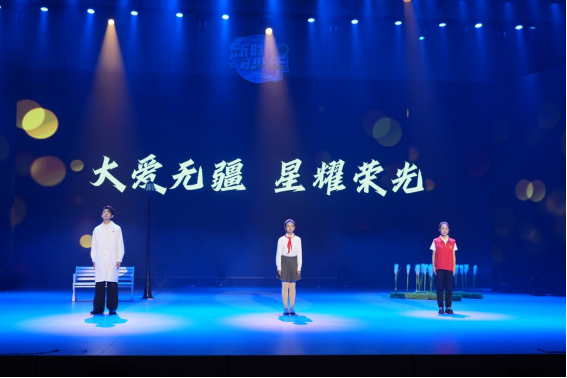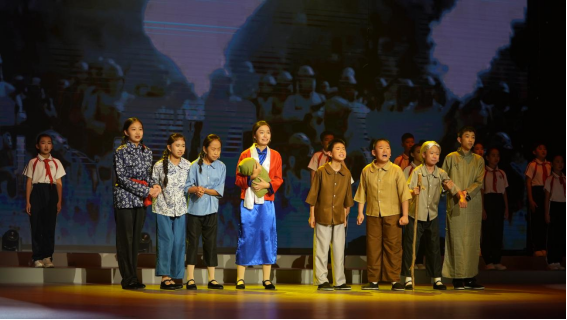 新时代好少年孙涵今、王艺晓、孙千雅、段金泽、苏禹冰、“泰山少年说”宣讲团代表等共同演绎了红色情景剧《奔腾的血脉》,革命先烈余志远投笔从戎,陈若克携女慷慨就义、张晶麟铁骨铮铮不向日寇低头……新时代少年用青春视角解读红色故事,一位位革命先烈的故事感染着在场观众。新时代的好少年应该铭记历史、缅怀先烈、珍爱和平、开创未来,不忘来时路,才能坚定走好未来的每一步。