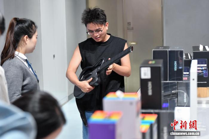 11月1日,顾客在cdf海口国际免税城体验无弦吉他。中新社记者 骆云飞 摄“新增电子商品紧跟时尚且价格优惠,尤其受年轻群体青睐。”海控全球精品免税城运营管理部销售经理钟时花说,官方售价2499元(人民币,下同)的某款Bose降噪耳机,免税价叠加折扣可以节省超过1000元。