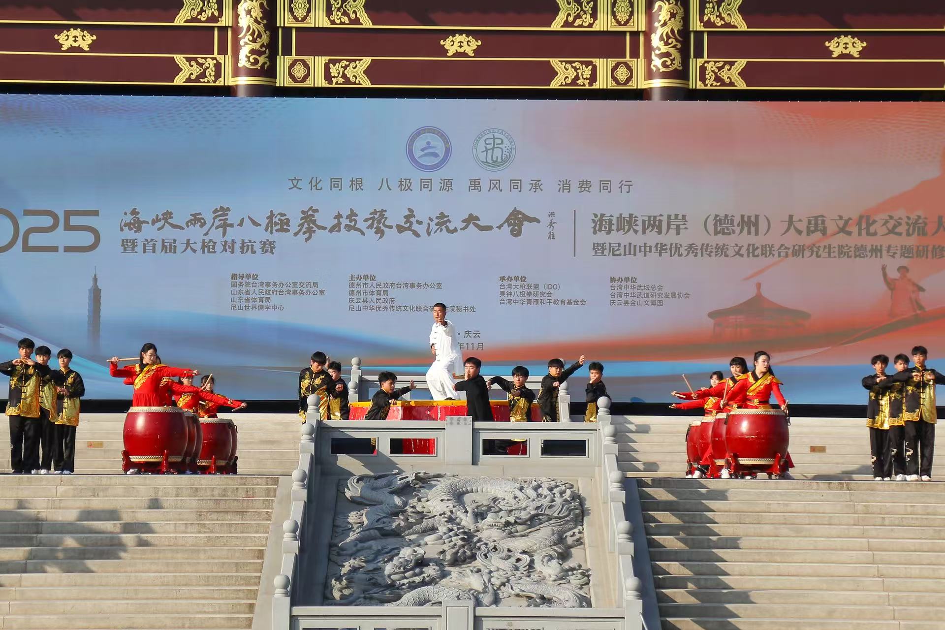 大会以“文化同根 八极同源 禹风同承 消费同行”为主题,自11月1日至4日,为期4天。分为“2025海峡两岸(德州·庆云)八极拳技艺交流大会暨首届大枪对抗赛、海峡两岸(德州)大禹文化交流活动开幕式”“八极拳技艺交流暨首届大枪对抗赛”“海峡两岸大禹文化交流研讨会”“尼山中华优秀传统文化联合研究生院德州专题研修活动”“乐购庆云 德台金秋消费季特色产品展(庆云县户外健身路径体育器材展)”五大板块。
