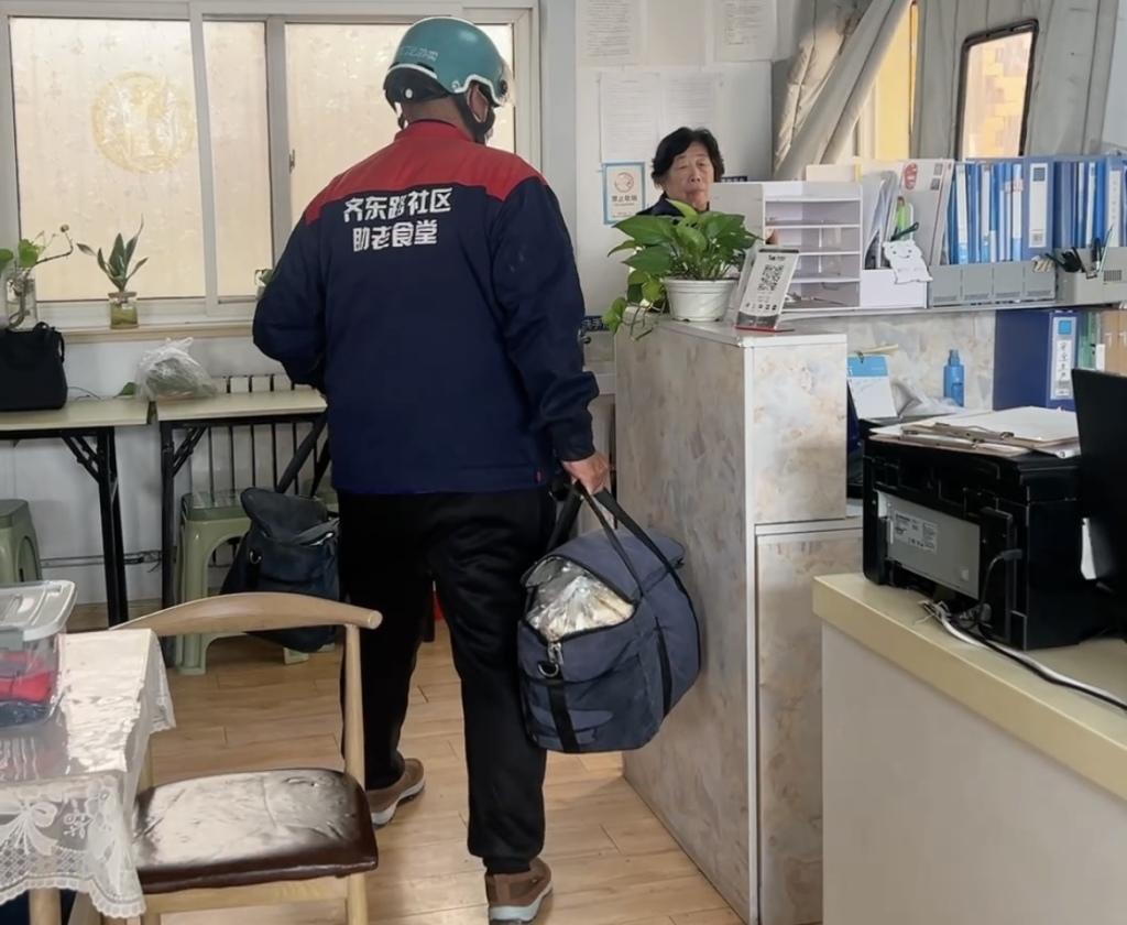 送餐工作由社区网格员承担。他们熟悉每家每户的情况,每天中午抽出时间,每人带上几份饭,穿梭在小区楼栋之间。“他们对老人情况了解,送餐时还能搭把手。”谭总说,有时帮忙扶一把、递个东西,甚至协助保姆上下楼,都成了送餐之外的“顺手服务”。