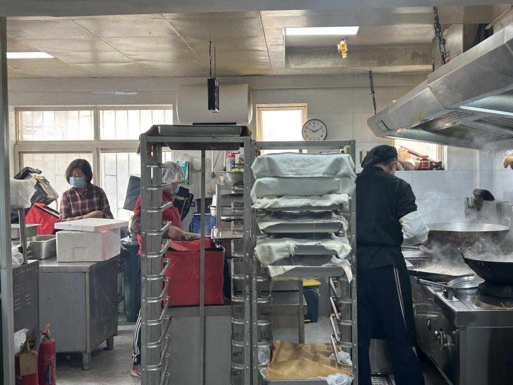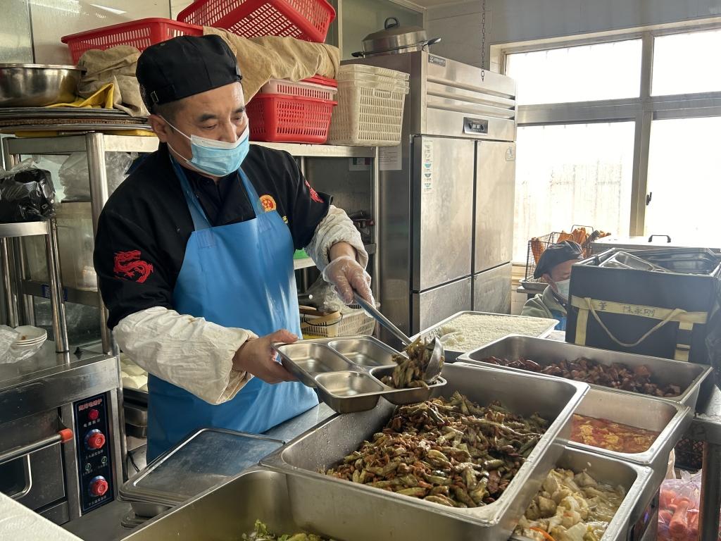 为了老人这一餐,每天清晨5点,食堂后厨便亮起灯火,面点师、大厨开始洗菜、发面、备餐。前台工作人员则从6点半起统计订单,打印配送清单。每一个环节紧密衔接,只为让老人在中午准时吃上可口饭菜。