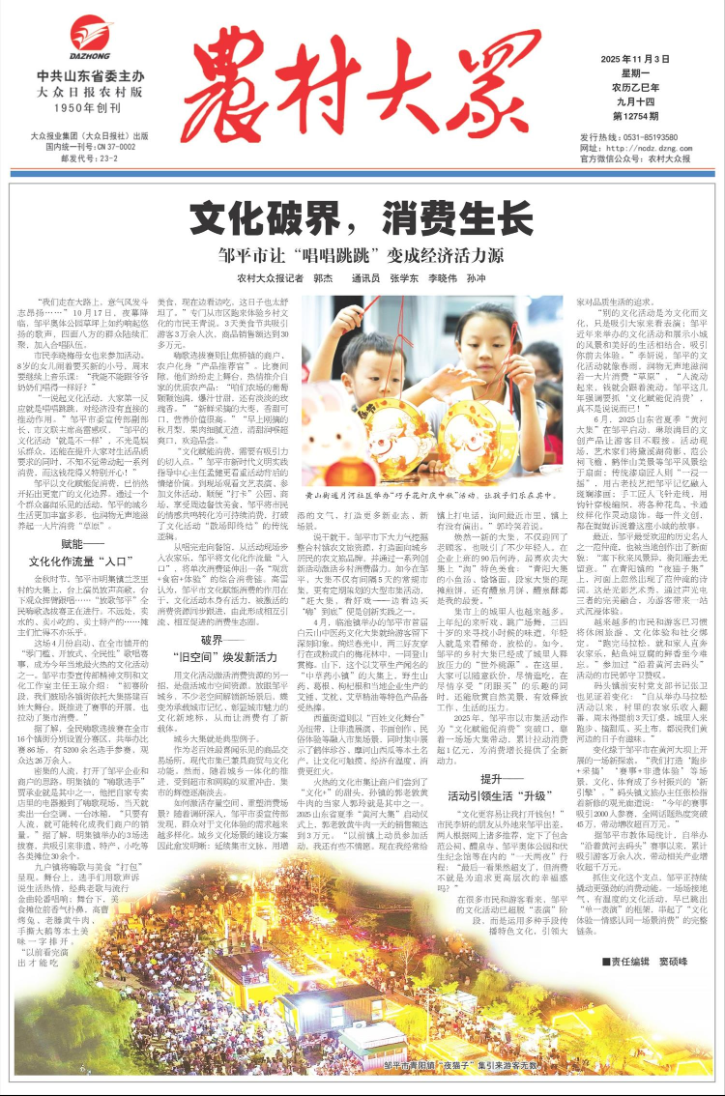 抓住文化这个支点,邹平正持续撬动更强劲的消费动能。一场场接地气、有温度的文化活动,早已跳出“单一表演”的框架,串起了“文化体验—情感认同—场景消费”的完整链条。
