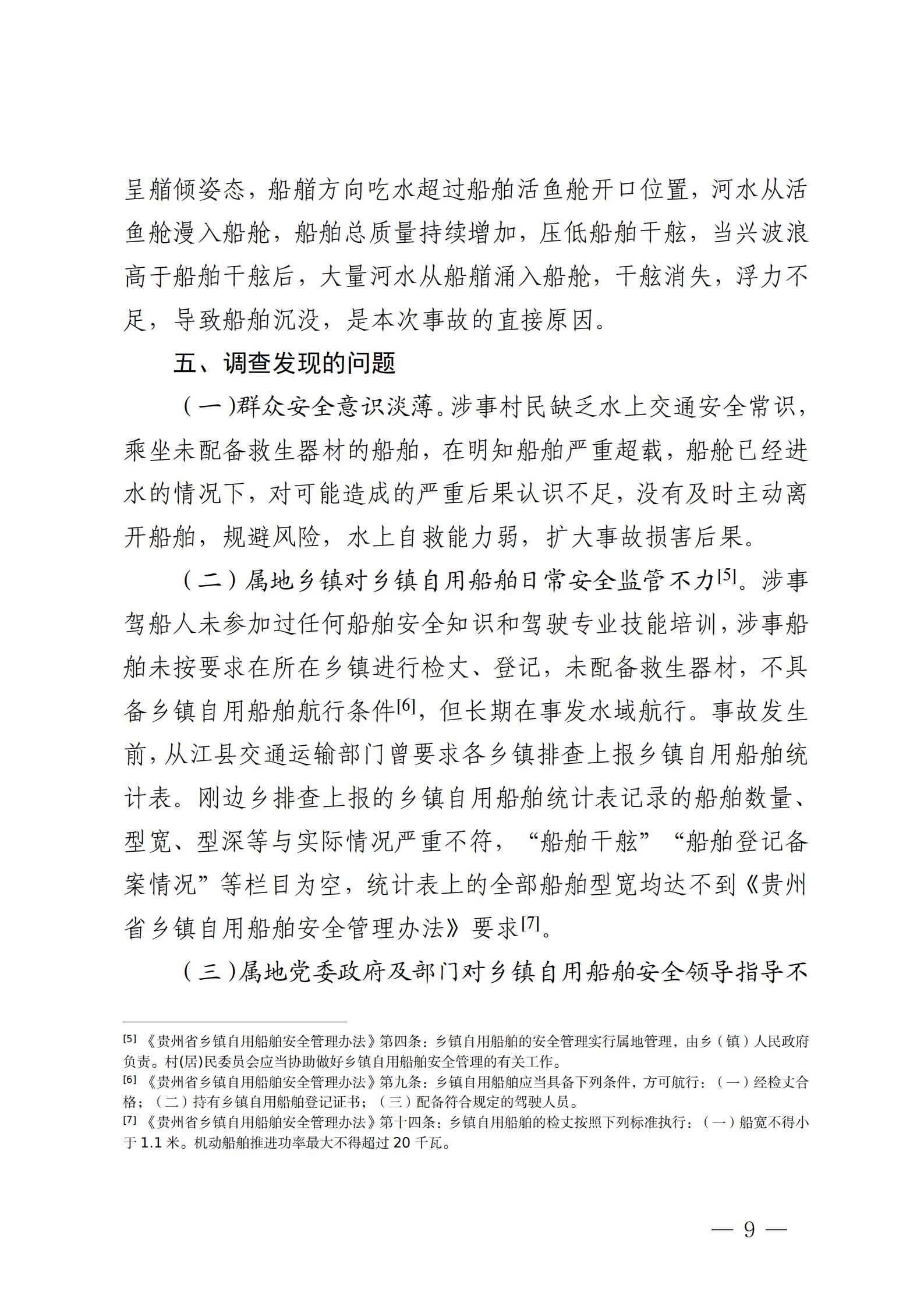 曾引起广泛关注的贵州从江翻船事故公布事故调查报告,事故直接原因涉及非法载客、严重超载、操作不当,大量河水涌入船舱导致船舶沉没。这起事故导致船上13人全部落水,造成8人死亡。