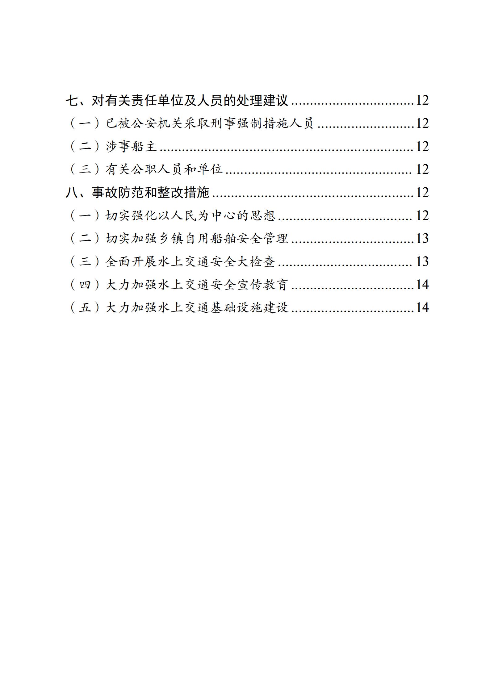 事故调查报告还建议,黔东南州要深入分析乡镇自用船舶管理中存在的突出问题,建立健全行业部门、乡镇、村(社区)、船舶所有人四级安全管理体系。有关部门要加强对乡镇自用船舶安全管理的指导。各乡镇人民政府要加强对乡镇自用船舶的监督管理,切实开展乡镇自用船舶检丈、登记工作,严厉查处超员超载、非法载客等行为。村(社区)要深入开展水上交通安全宣传教育,认真组织乡镇自用船舶所有人签订安全告知书。乡镇自用船舶所有人要严格遵守安全管理规定,落实各项安全防范措施,确保乡镇自用船舶使用、管理安全正规有序。