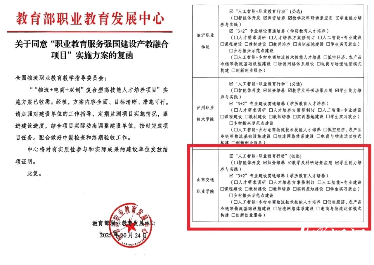 山东交通职业学院一人才培养项目获国家级立项
