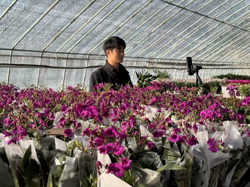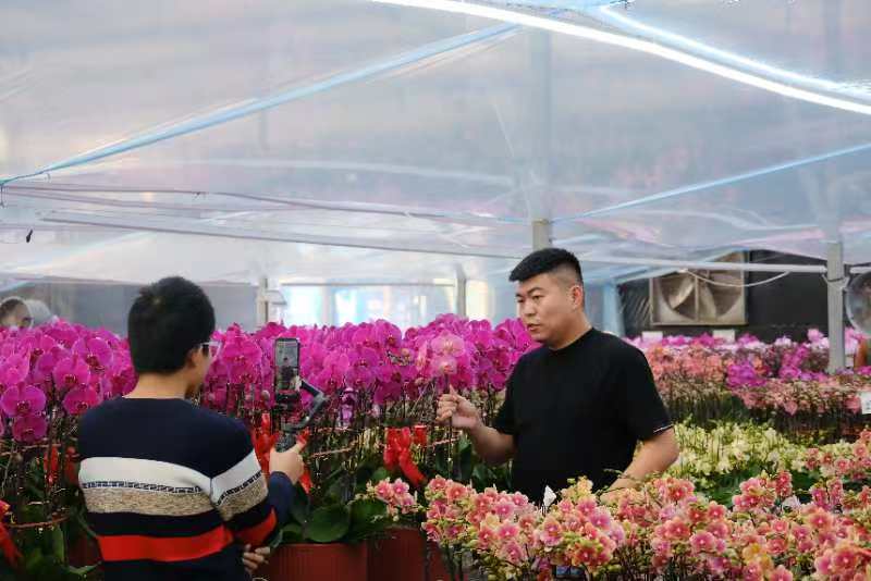 “家人们,看这盆蝴蝶兰,品种叫大辣椒,颜色鲜艳喜庆,不管是自己摆在家里还是送朋友都非常合适,大家准备好,拼手速……”近日,在位于潍坊青州市黄楼街道的山东花之漫园林绿化工程有限公司直播间里,电商主播刘成纪正在展示手中的花卉,详细介绍其品种、特性、价格等,粉丝们纷纷下单。
