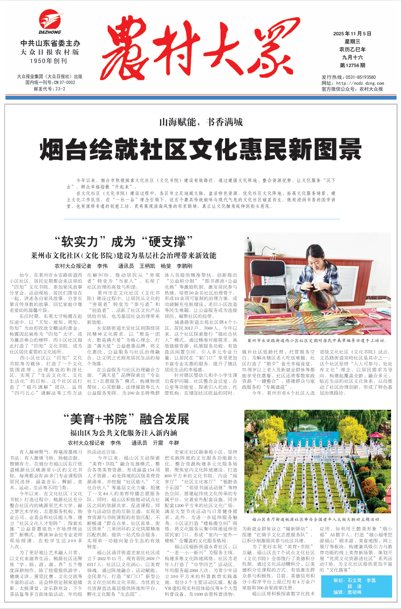 今日报纸头条 | 烟台绘就社区文化惠民新图景