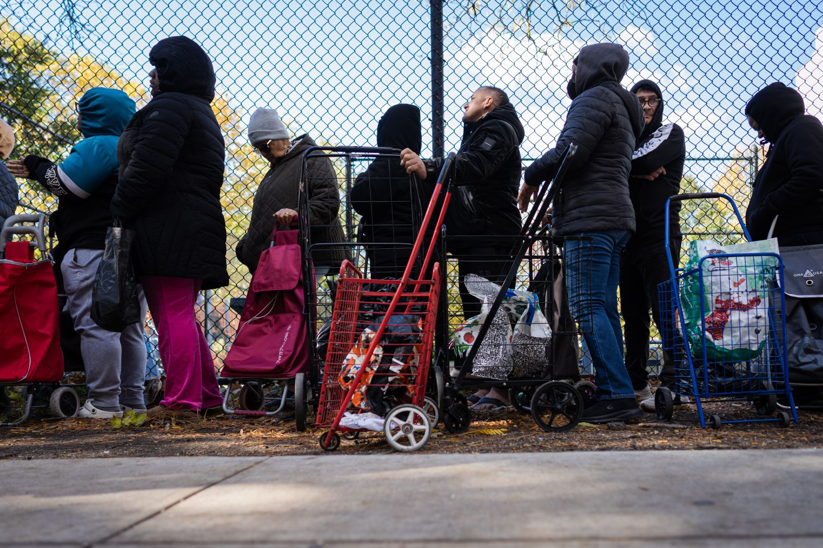 11月1日,美国纽约布朗克斯,排队领取免费食品的人群。来源:视觉中国