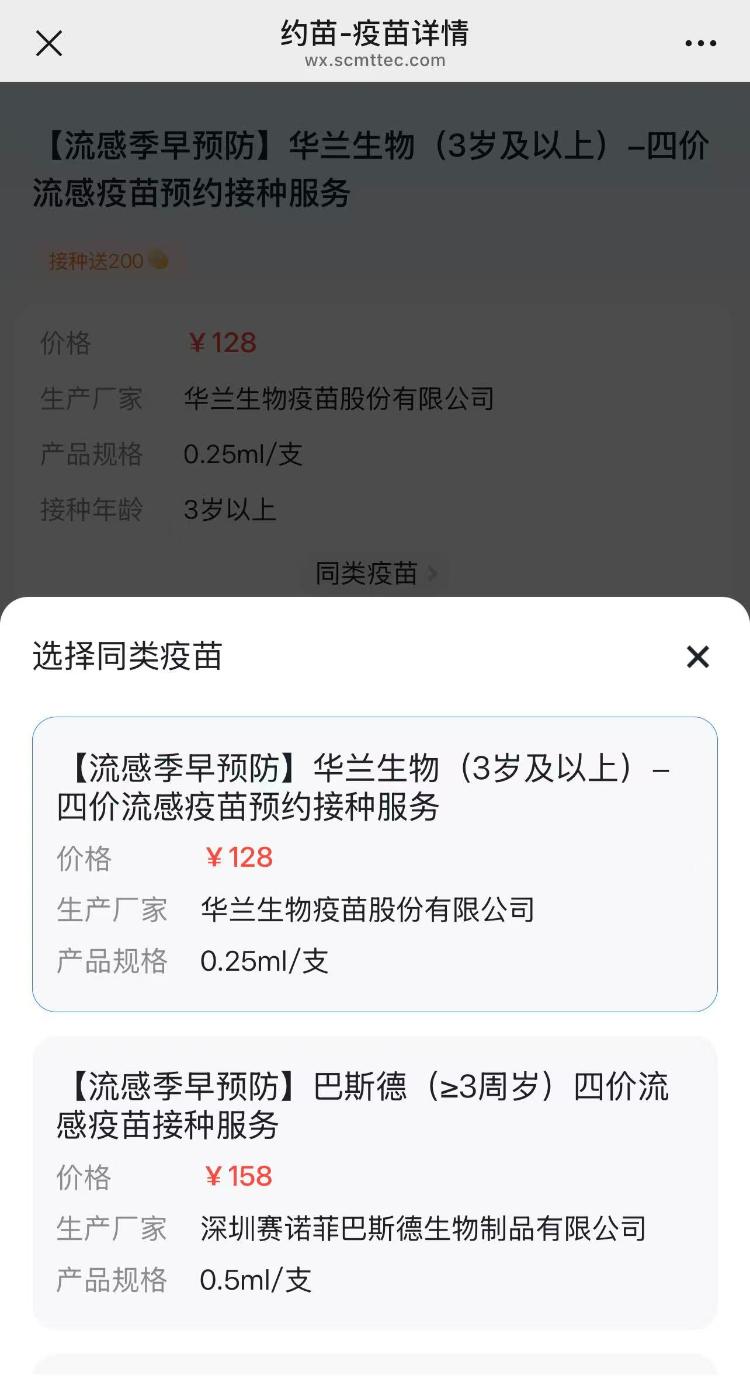 红星资本局在约苗小程序看到,在上海某基层接种点,华兰疫苗和巴斯德的四价流感疫苗价格分别为128元、158元。