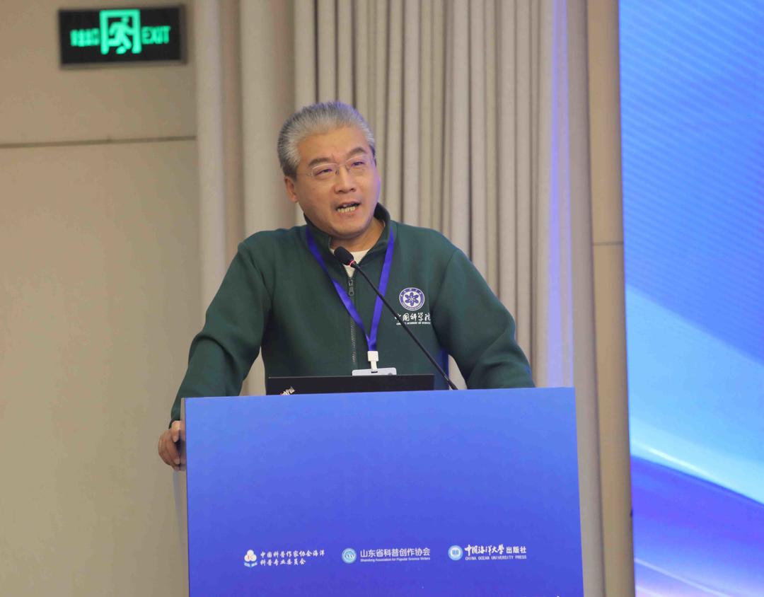 卢光志在开幕式致辞中,系统阐释了中国海洋大学在科普事业中的责任担当。他表示,学校在打造海洋领域国家战略科技力量、为强国建设和民族复兴伟业培育优秀海洋人才、发挥蓝色智库作用的同时,也着力将丰富科研成果转化为优质科普资源,并有效促进科学普及与科技创新同频共振。学校积极参与中国科普作协海洋科普专委会和山东省科普创作协会平台建设,坚持举办内容丰富、形式多样的科普活动,在提升公众海洋意识和科学素养方面发挥了积极作用。他希望参会的各位专家能够继续关心支持学校科普创作事业发展,共同努力,为扎实推动科普工作高质量发展,为服务科技强国、海洋强国建设作出新的更大贡献。