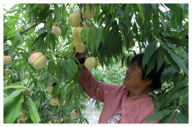 “比种普通庄稼强!”肖作壮掰着指头算起规模账:2018年流转土地15亩引种“映霜红”,第三年就入盛果期,“亩产轻松过万斤,批发价3块2,去年行情好,利润30万!今年雨水多点,十几万也稳当。”规模种植不仅富了肖作壮,更盘活了村里的闲散劳力。采摘、疏果、套袋时节,每天用工少则十几人,多则二十几,“日工资50块,虽然不多,家门口就能补贴家用,对不能外出的老人来说,是实实在在的活计。”肖作壮说。