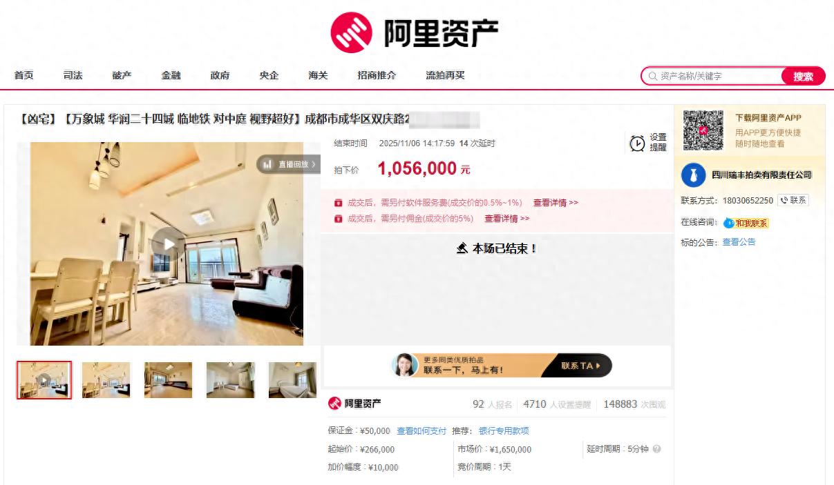 14万人围观!26.6万元起拍的成都“凶宅”最终105.6万成交