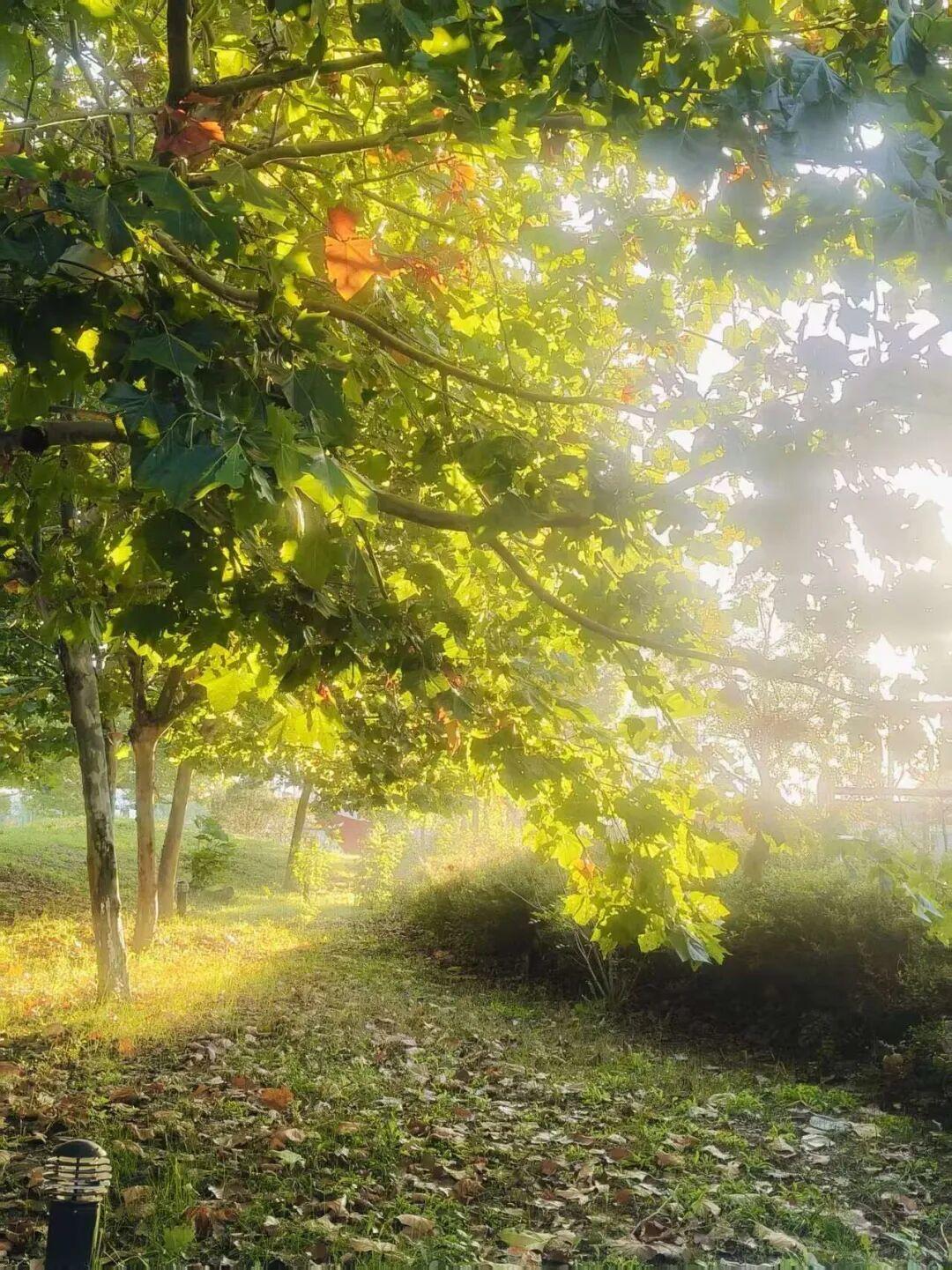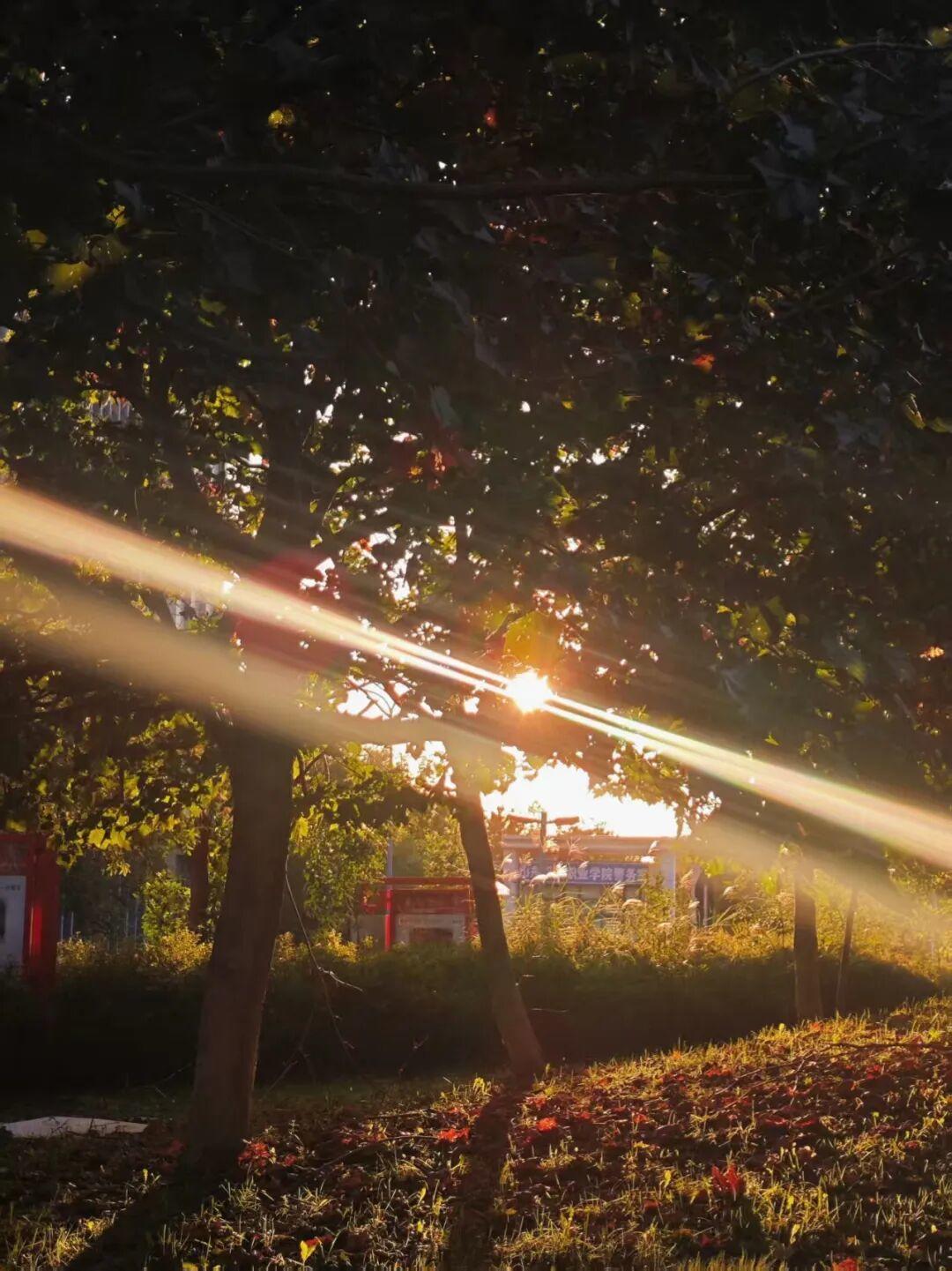 阳光穿过层层树叶,洒下一道耀眼的光芒,仿佛是大自然最温暖的拥抱。(作者:周嘉慧)