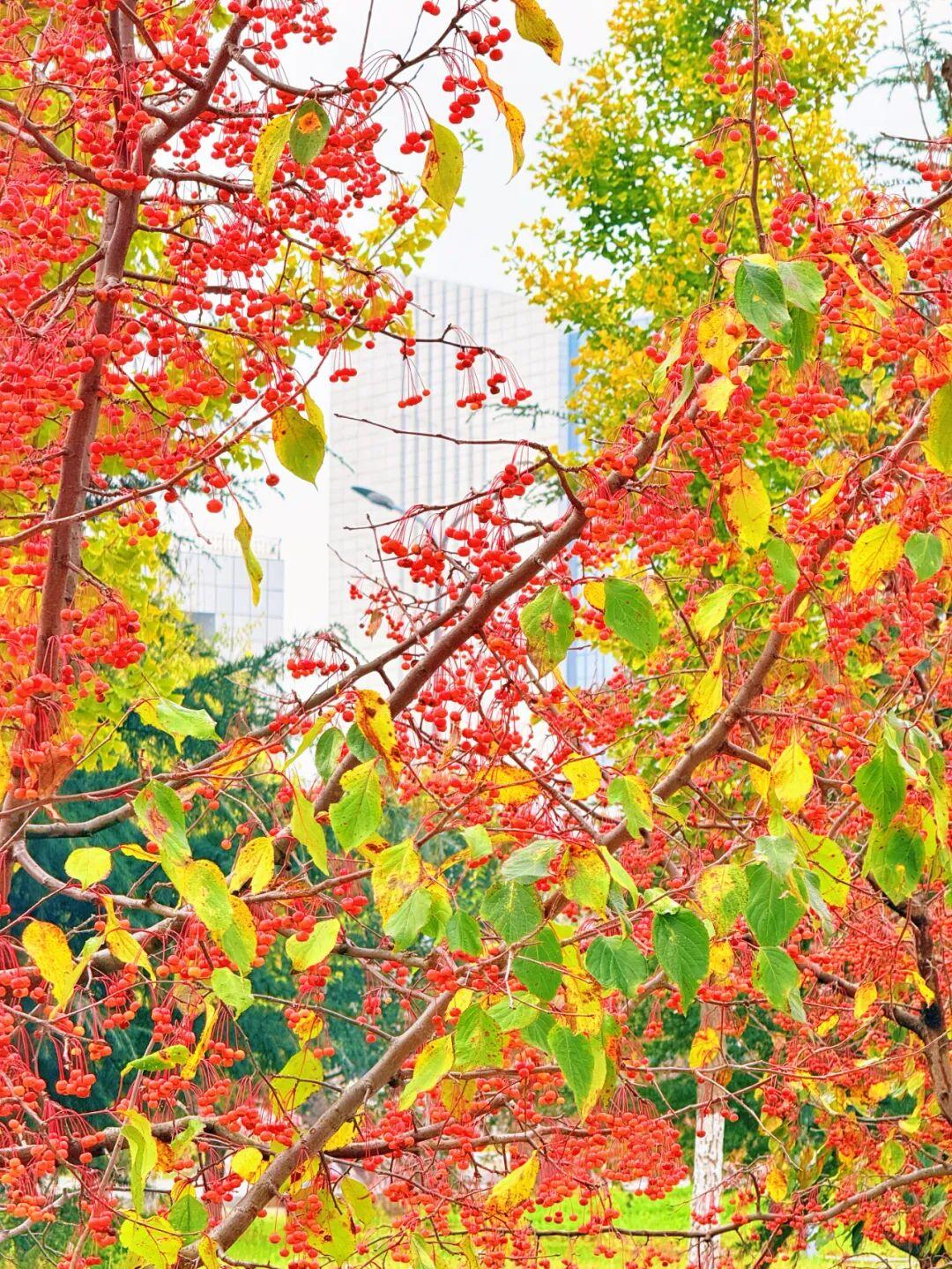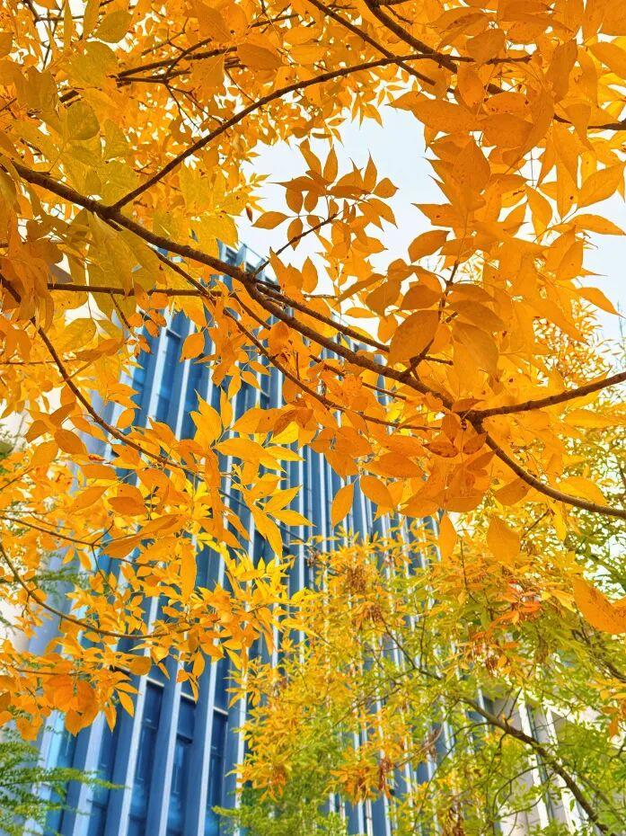 漫步校园,诗意扑面而来,枫树在微风中摇曳,赤红与金黄相间的叶片层层叠叠,为书香校园注入热烈生机;银杏叶随风轻舞,落地铺就金色小径,步步皆是诗意;灌木丛间,晶莹的小红果缀满枝头,宛如串串珊瑚珠,为初冬增添了灵动暖意。