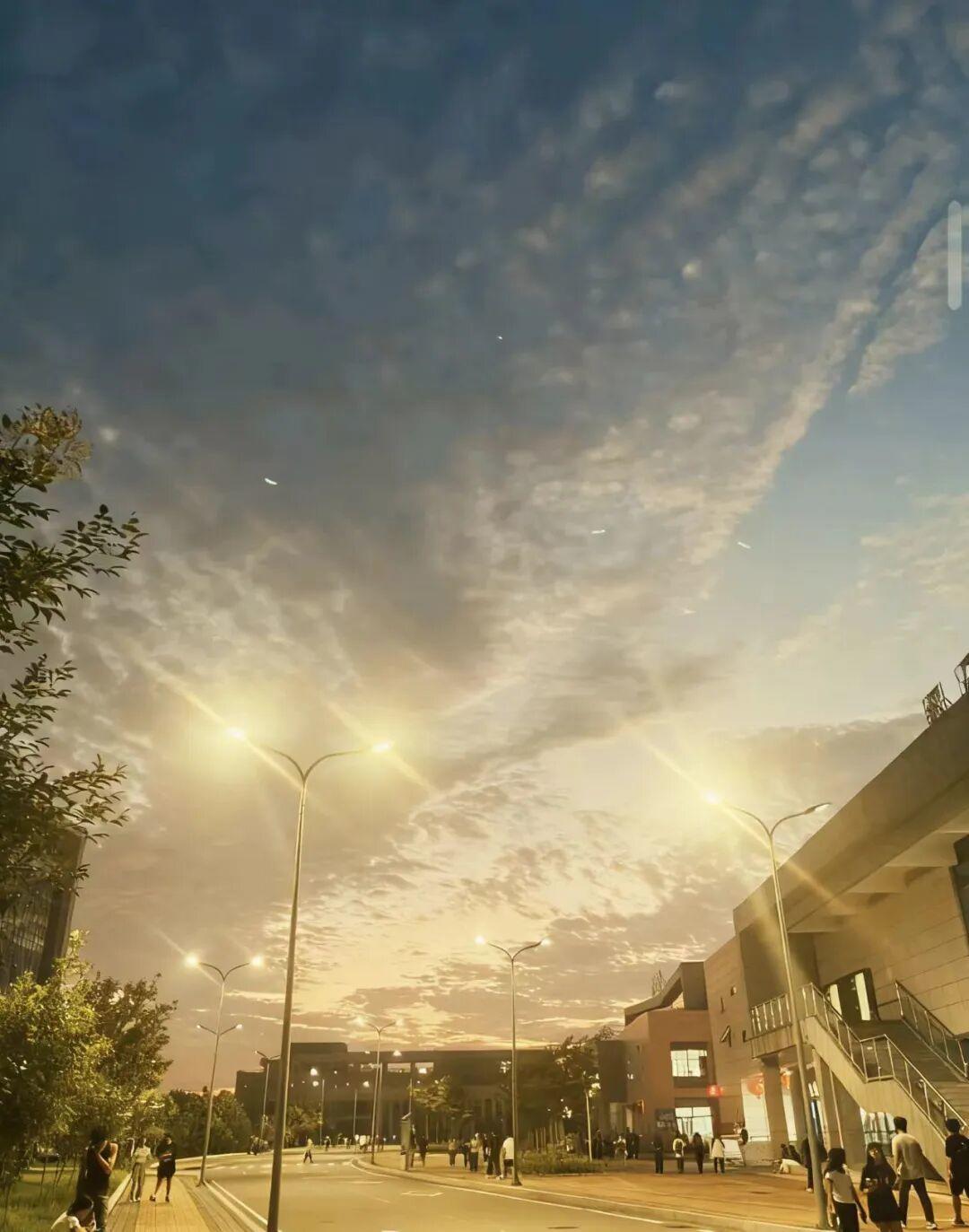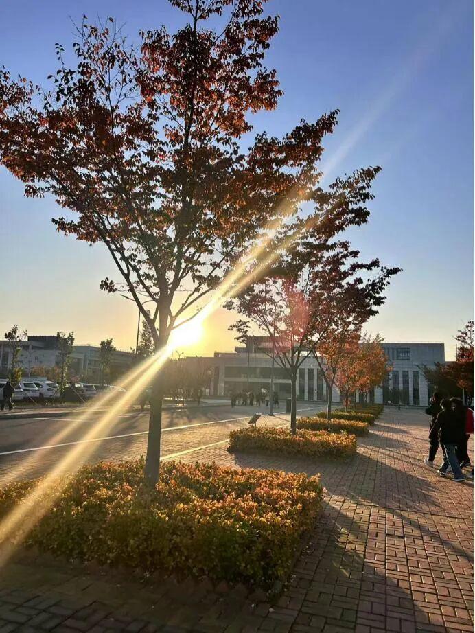 草木的斑斓颜色,让校园里多了一分热烈,树叶在晚霞的映照下变得火红金黄。(作者:宇甜甜)