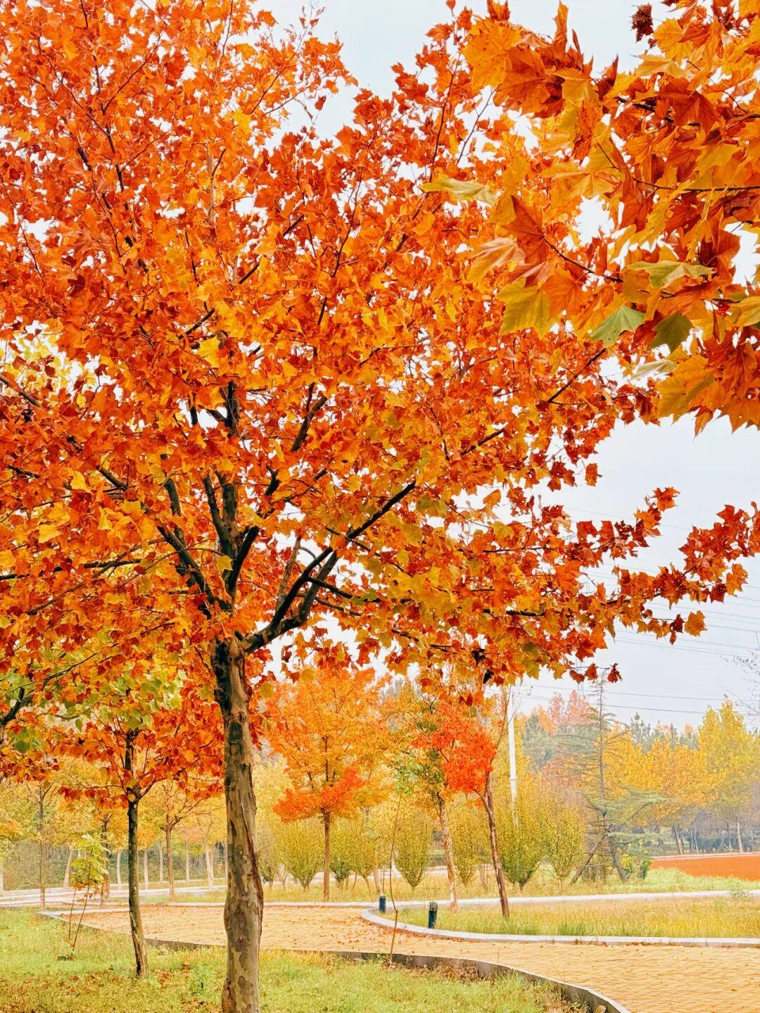 树木点燃簇簇火焰,赤红或金黄的叶片,增添了热烈与静美。(作者:赵天雅)