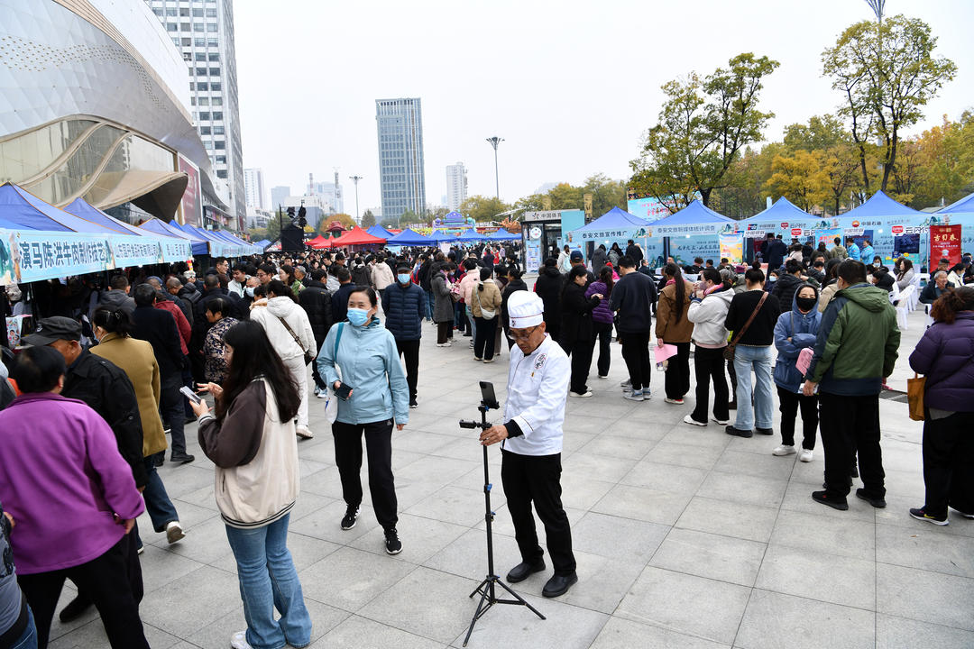 此外,“食享泰山 烟火泰城”主题美食周、“拾味泰山·创享生活”非遗文创市集、“全城乐购系列消费”等配套活动同时举办。“食享泰山•烟火泰城”主题美食周聚焦泰安当地特色美食、小吃、创意食品,设置互动体验环节,邀请游客现场参与部分美食制作,打造有吃头、有看头、有玩头的美食体验场景;“拾味泰山·创享生活”非遗文创市集设置非遗核心区、手造文创区、民俗互动区、特色农产品区四大展示区93个摊位,集中呈现泰安非遗制作技艺、非遗产品、特色农产品与文创产品,让游客可参与美食制作体验、民俗互动,促进文创产品转化;“全城乐购系列消费”则推出“一元品美食·泰安特色产品打卡”、朋友圈分享有礼、“豆”转乾坤·消费满赠/抽奖等活动,实现“以美食聚人气、以文旅促消费”的目标,推动泰安文旅资源与美食产业深度融合。