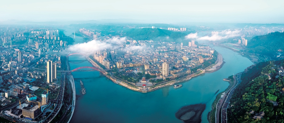 长江是澎湃的。奔腾不息的长江,为宜宾注入了“我住长江头,干事争一流”的激情,形成了“慕义求真、融酝和美、汇江向海、逐立上游”的宜宾新时代城市精神。
