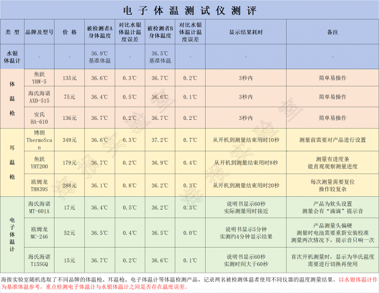海报实验室丨电子体温检测仪到底准不准,记者实测几乎一种设备一个温度,最高相差1度
