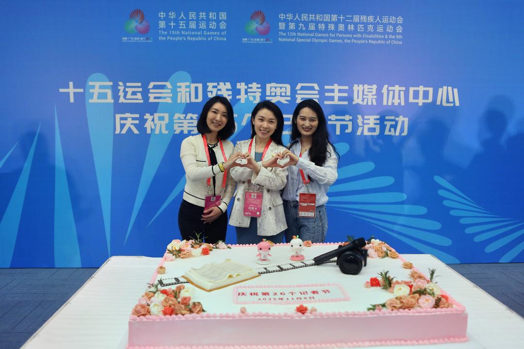 11月8日上午11点08分,大湾区全运会广州赛区主媒体中心为记者节在全运一线报道记者举行了庆祝节日切蛋糕活动。