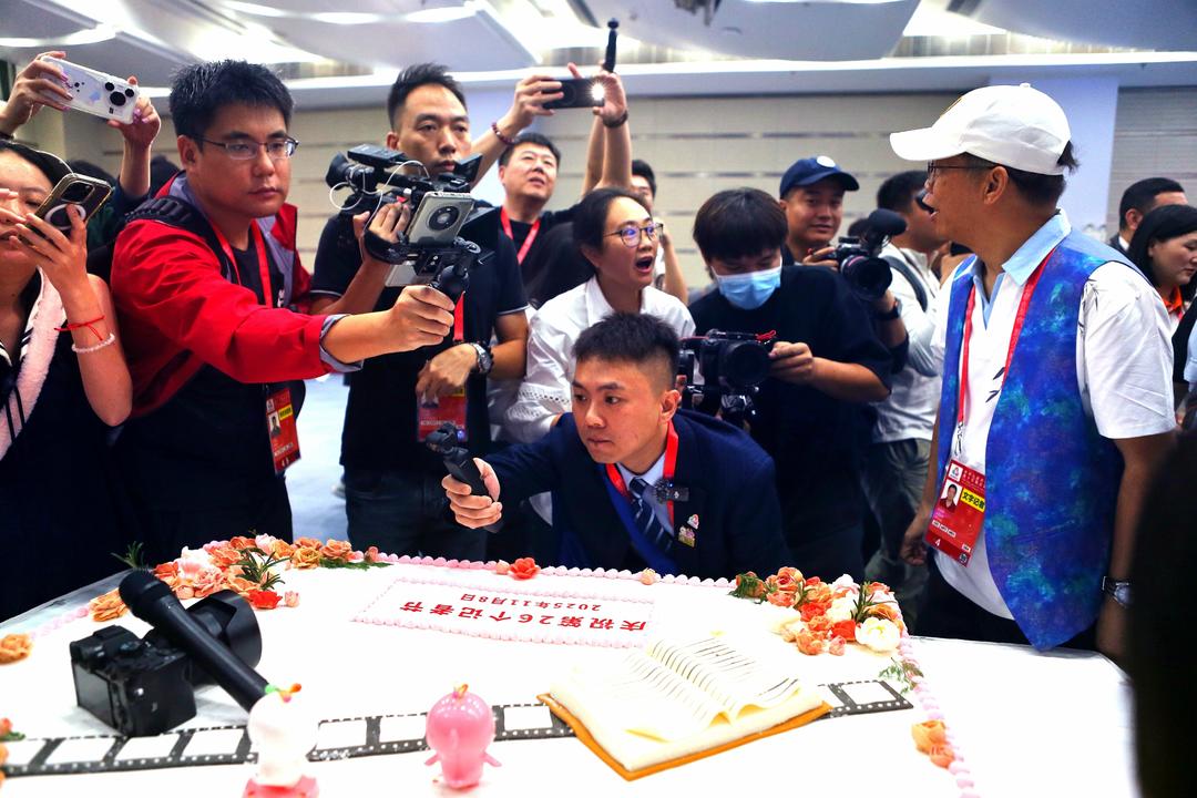 简短的仪式后,赛区组委会宣传部负责人和记者代表一起切蛋糕。
