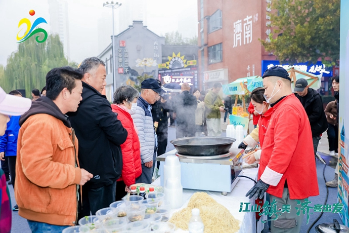 活动还未开始,现场已人潮涌动,镇江锅盖面、恒顺香醋、宴春肴肉等8大镇江特色主题摊位吸引了大批济南市民驻足参观、品鉴。整场活动在极具江南韵味的开场歌舞《一程光阴》中拉开序幕。歌词从青石板路到北固月色,从江南烟雨到南山牌坊,全方位展现了这座江南宜城“美在风骨、暖在温度”的融汇底蕴,让人耳目一新。