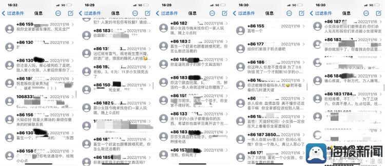 她还接到了无数辱骂她的短信。陆女士提供的短信截图显示,这些短信中充斥着大量人身攻击,内容不堪入目,还波及到了她的父母、孩子。记者注意到,这些陌生电话号码的归属地,来自全国各地以及海外。