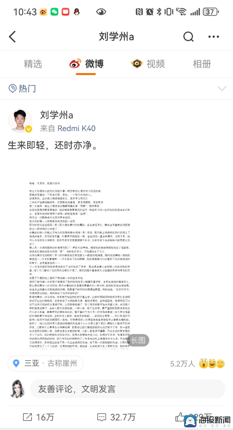 2022年1月24日,在找回亲生父母40天后,寻亲男孩刘学州通过网络发布遗书,随后在海南三亚自杀身亡。在遗书中,他用千余字讲述了遭遇网暴的经历:因发布被生母拉黑的截图和录音,被网友质疑动机不纯,随后被很多陌生人辱骂、讽刺,直至精神崩溃……