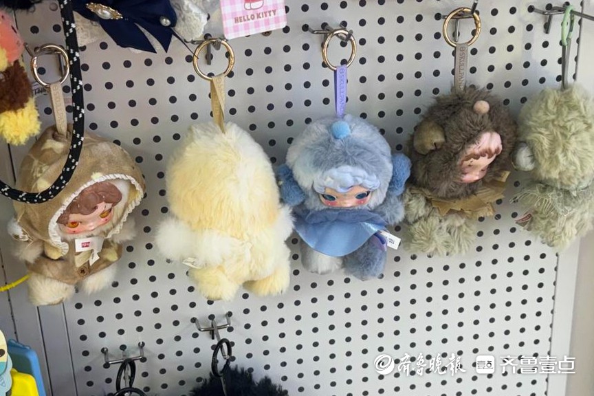 当日,记者在历城区一家潮玩专卖店看到,其门店内摆放了多款泡泡玛特、迪士尼、jellycat相关产品。