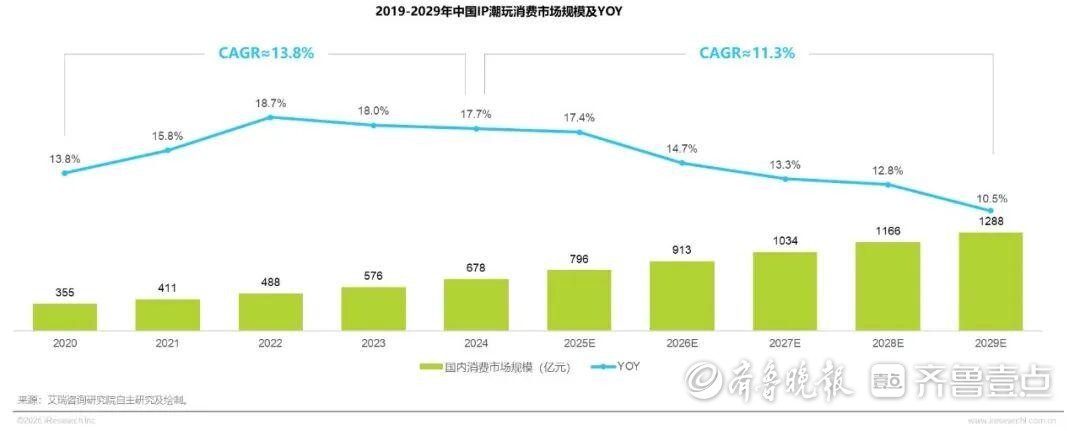 事实上,高仿横行的背后,是潮玩市场的发展迅速。11月5日,艾瑞咨询发布的《2025年IP潮玩经济研究报告》显示,2024年中国IP潮玩消费市场规模约678亿元,预计2027年中国IP潮玩消费市场规模将突破1000亿元,2029年达到近1300亿元。