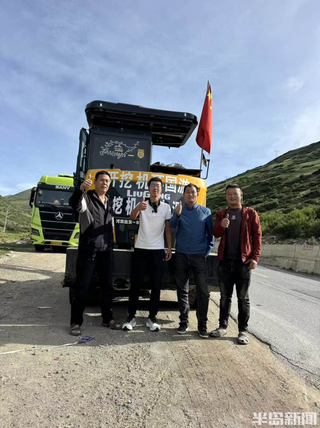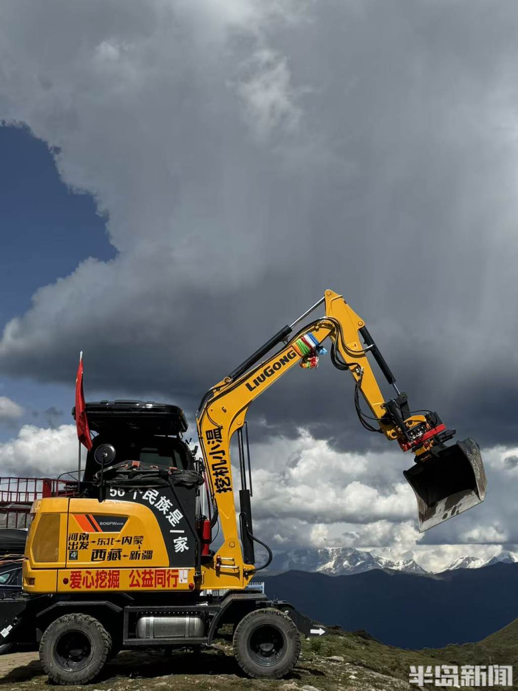 我在车身上贴了“爱心挖掘,公益同行”八个大字。这既是对别人的承诺,也是对自己的提醒。一路上,只要看到有人招手求助,我必定会停下。有时候是帮忙拖车,有时候是清理塌方,更多的时候是填平那些坑坑洼洼的乡间小路。