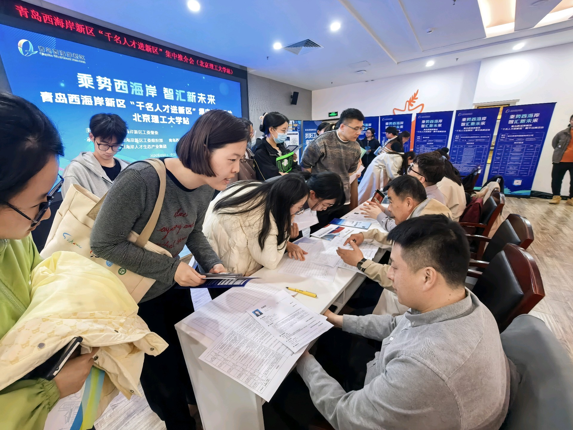 为打破地域限制、降低人才参与门槛,本次活动构建“线上+线下”立体联动的报名体系。线下层面,青岛西海岸新区将分批次奔赴北京、上海、广州、南京、西安、哈尔滨等重点城市,深入30余所高校举办“招才引智名校行”选聘会,现场提供政策宣讲、简历接收、面谈签约“一站式”服务,让人才与岗位面对面高效对接,同时在青岛西海岸新区东、西区人力资源大市场设立固定投递窗口,为本地及周边人才搭建近距离交流渠道。线上则依托“职海冲浪”“青西智找活”“就业创业一张图”电子导引微信小程序,24小时开放简历投递通道,实现“足不出户锁定心仪岗位”,以数字化服务为人才参与活动保驾护航。