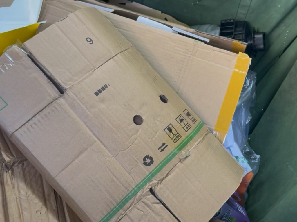 东都花苑小区本用来回收旧衣的箱内堆满纸壳