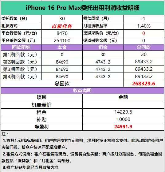青云租的宣传资料显示,公司运营模式主要是向社会人员吸纳投资,资金折算成不同型号的苹果手机,投资者依托平台将手机租赁出去后收取租金差价,年化率可以达到16.8%。