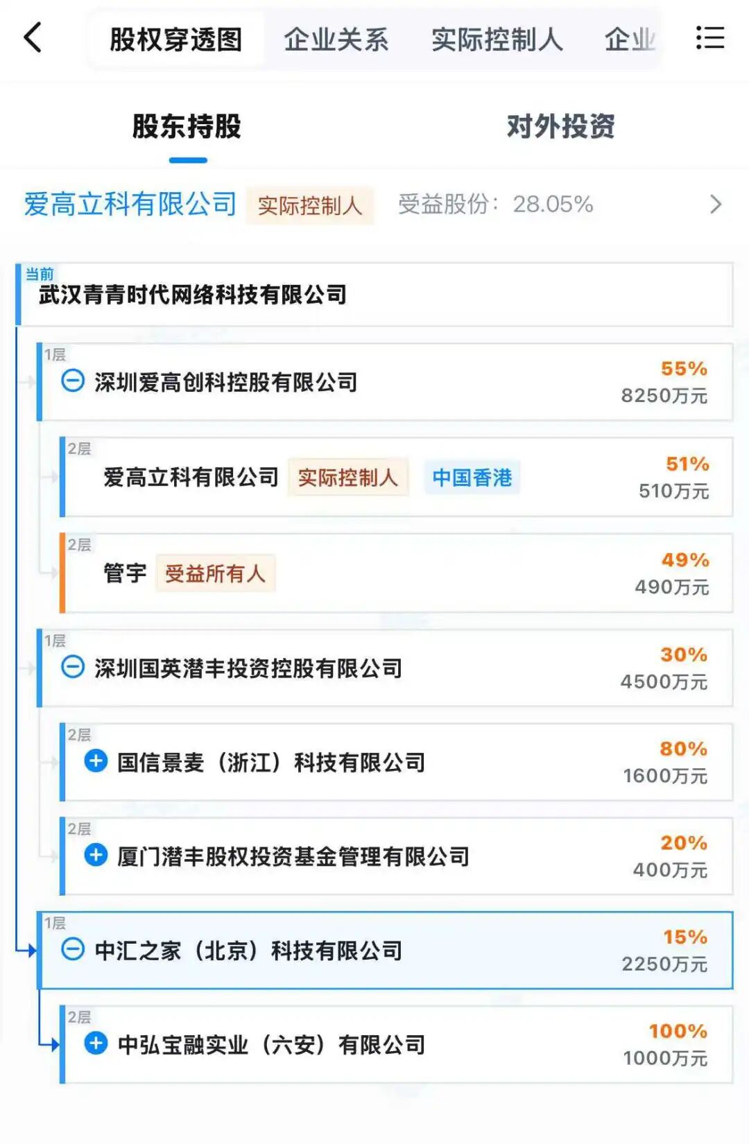 天眼查显示,青云租所属的武汉青青时代网络科技有限公司,成立于2020年,系深圳爱高创科控股成员。