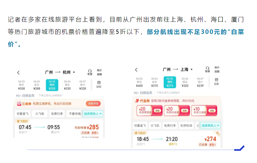 机票价格下跌相关报道