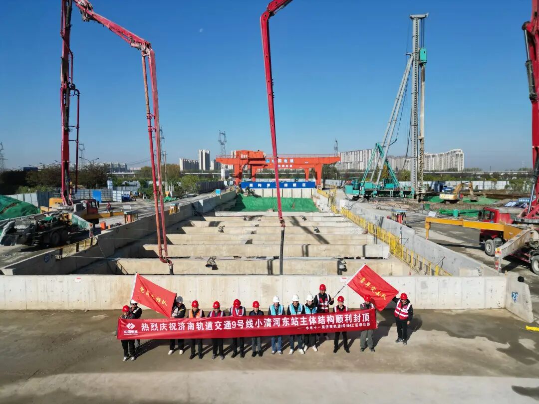近日,济南轨道交通9号线连传捷报:小清河东站(以下均为工程名)主体结构顺利封顶,华山东路站至华山站区间(简称“华华区间”)左线顺利贯通。两大关键节点的相继突破,标志着项目建设取得阶段性成果,为全线贯通运营奠定坚实基础。